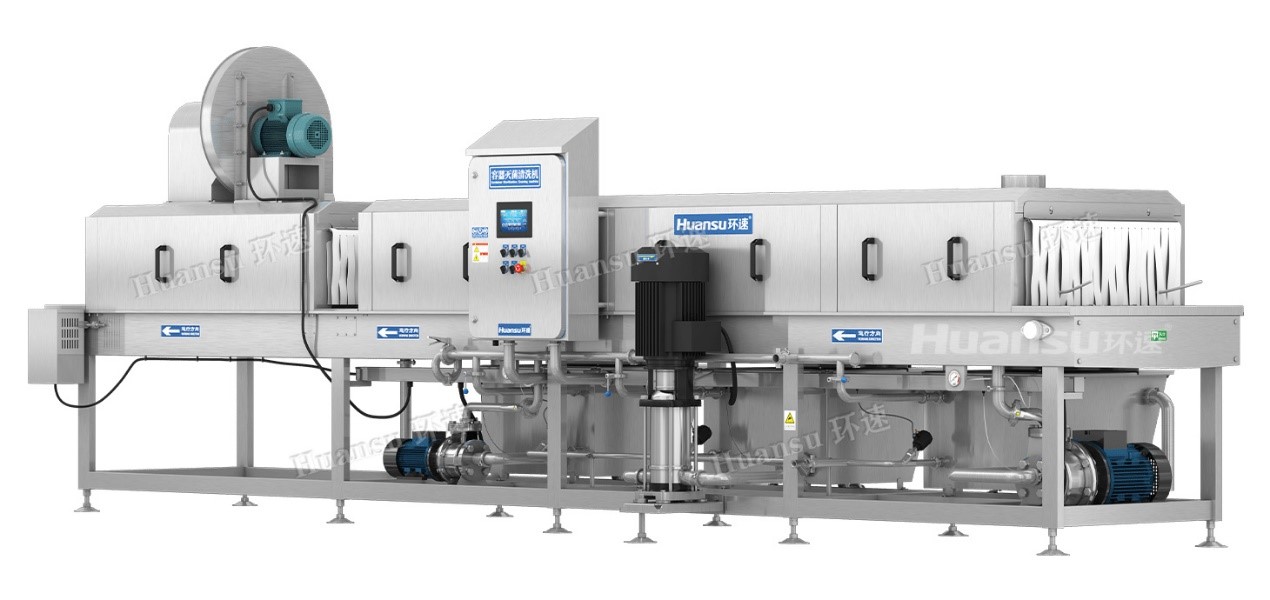 对于设备的卫生情况,环速做出了全方面的考量。烘干式洗箱机使用SUS304不锈钢材质加工而成,管路采用无缝焊接技术,内外焊口平滑,无卫生死角,整机可直接进行灭菌水洗、化学清洗、蒸汽灭菌,清洗方便快捷,清洗后无细菌滋生,不会成为二次污染源,不会对箱子造成污染等问题。与传统清洗不同,烘干式灭菌洗箱机只需2人即可完成传统清洗10~20人的清洗量,可对接自动化设备,完成无人车间的快速清洗。在设备的运行过程中,使用三级水箱更替用水,清洗水通过多级过滤循环使用,与传统清洗方式相比,节省水、电能耗使用,大大提高了生产效率。